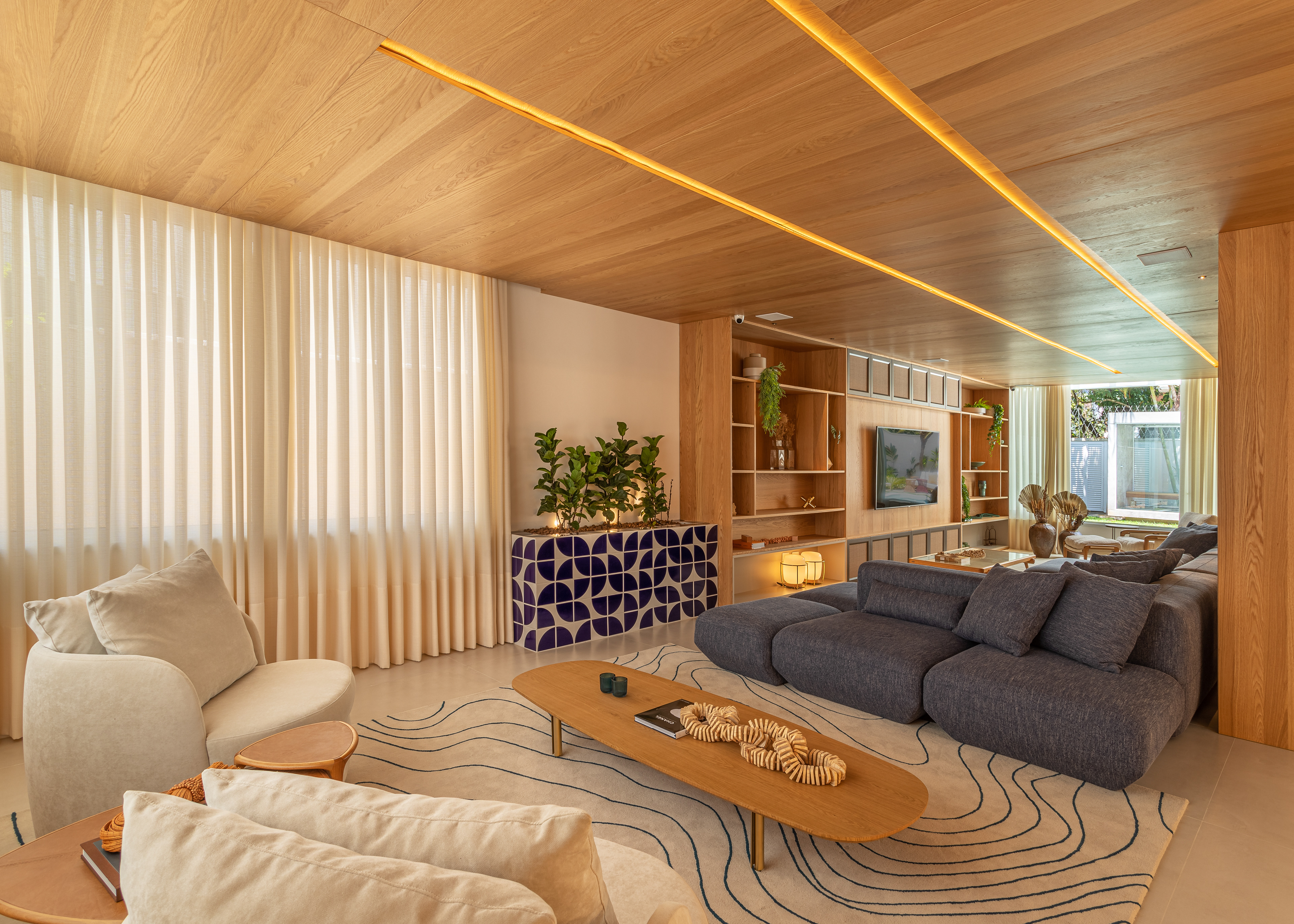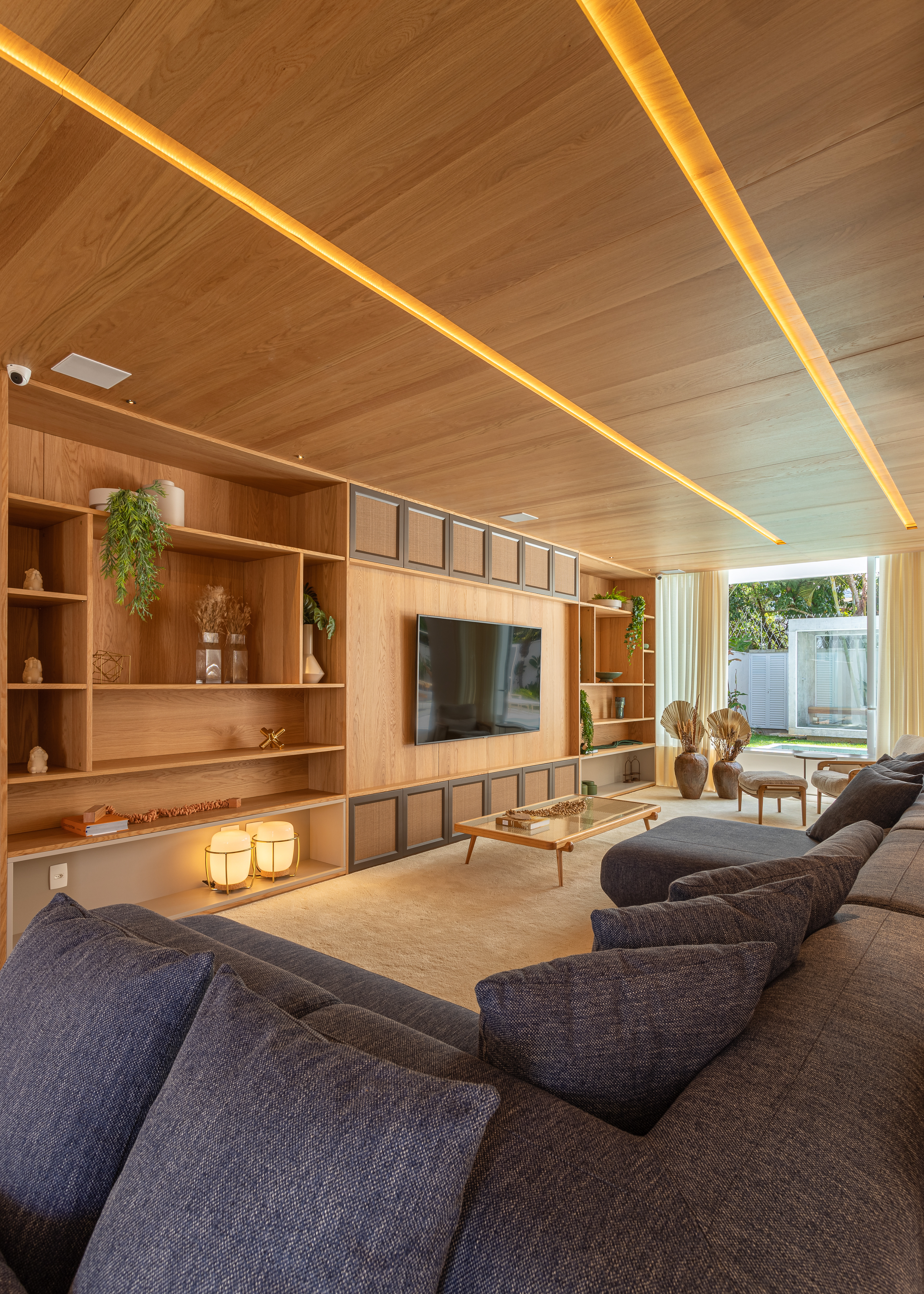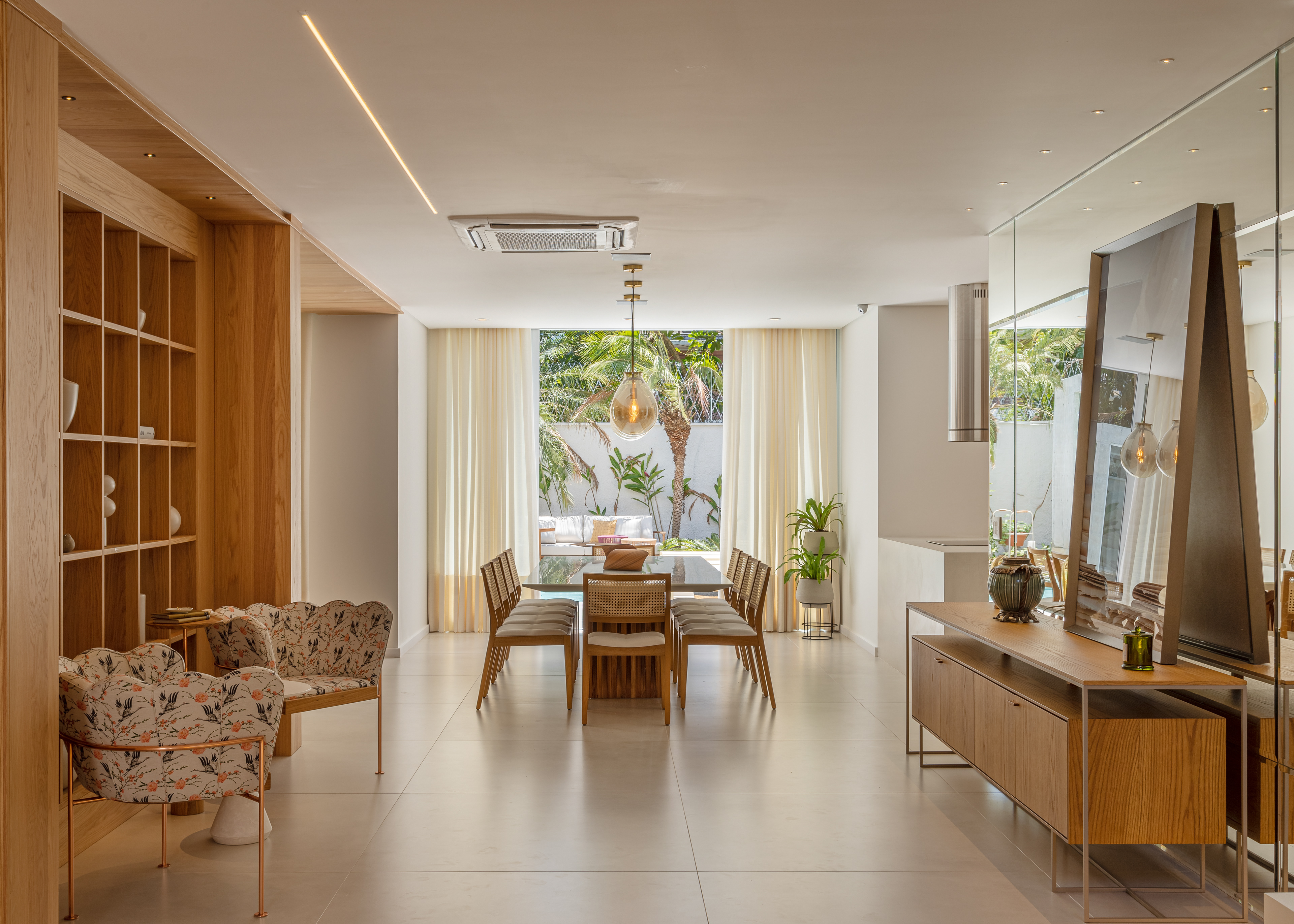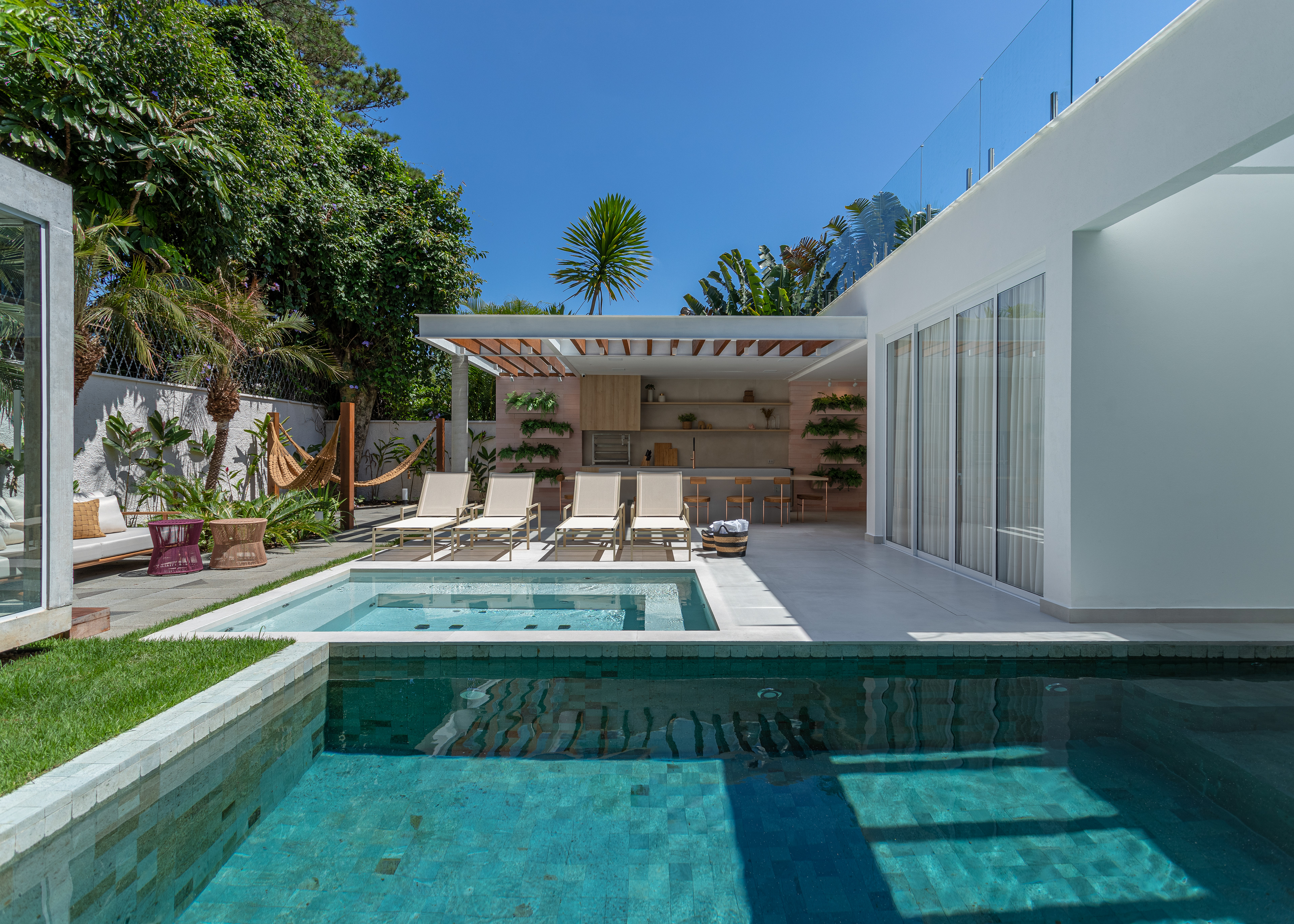 O Projeto Balancê nasce do ritmo suave das ondas de Maresias e se traduz em uma arquitetura que dança entre o dentro e o fora. Aqui, os limites se dissolvem: o chão de pedra se torna a areia que convida o mar a entrar, e as paredes verdes ecoam o frescor da mata que abraça a casa. Os espaços fluem como uma conversa contínua, onde cada ambiente é um convite à permanência e ao encontro, orquestrados por um balanço que flutua, materializando o espírito lúdico de um refúgio feito para sentir a brisa e colecionar memórias.