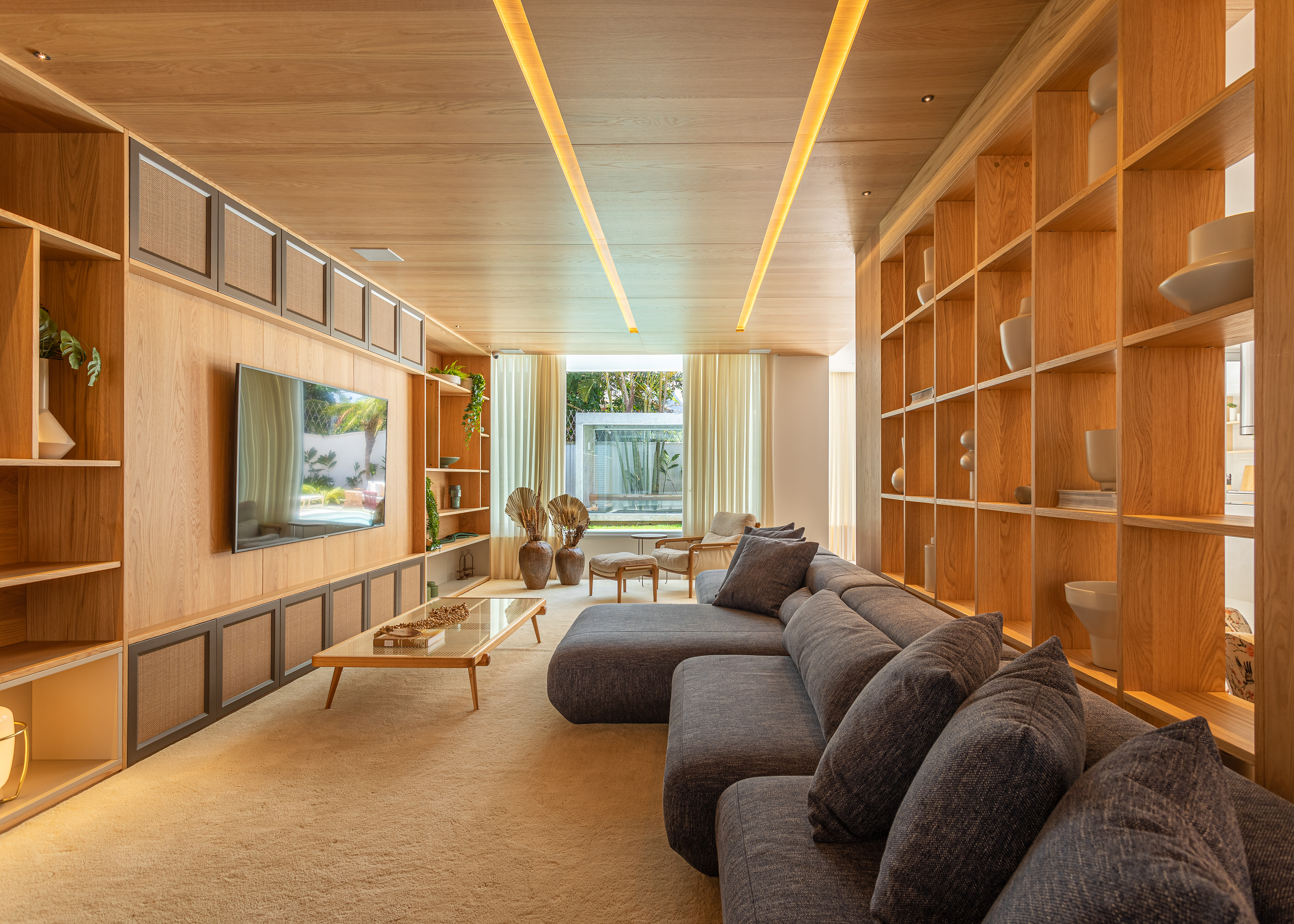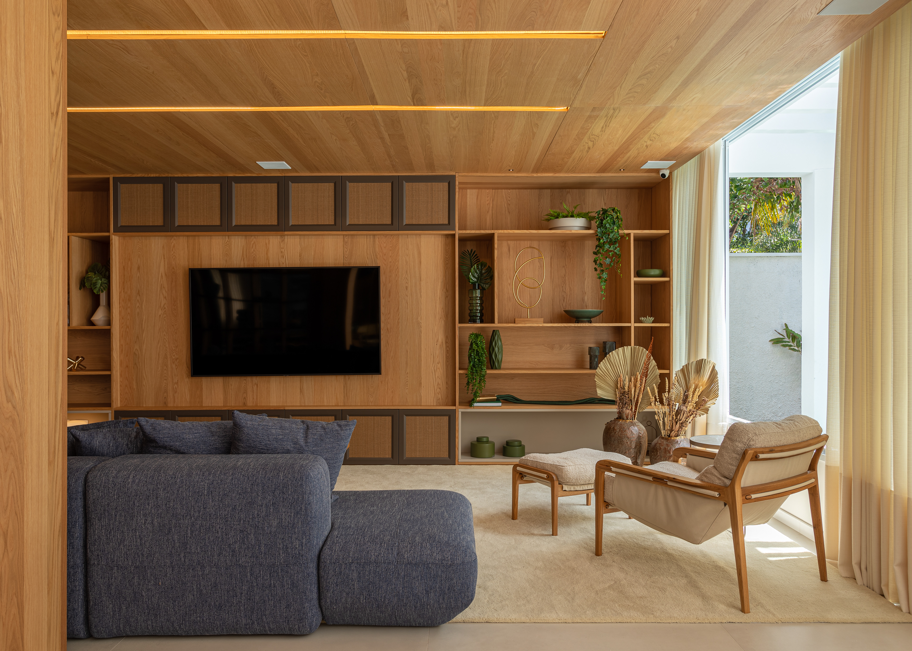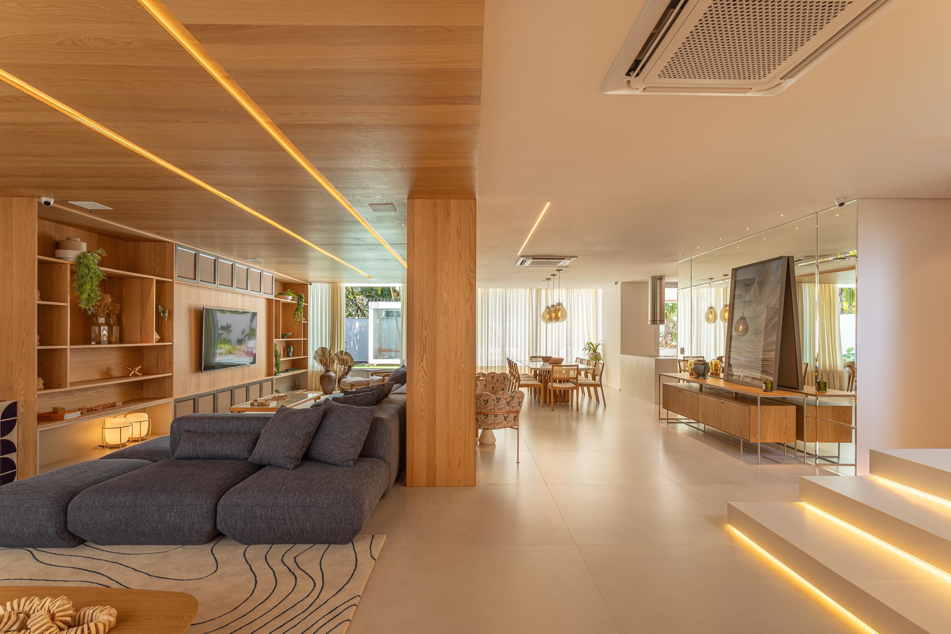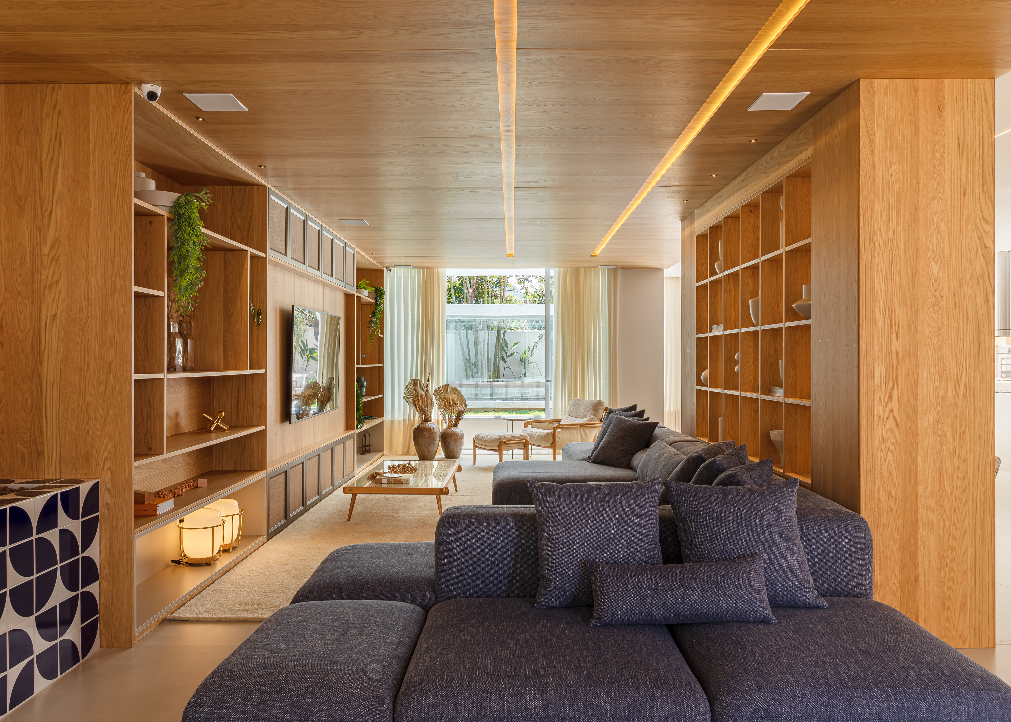 O Projeto Balancê nasce do ritmo suave das ondas de Maresias e se traduz em uma arquitetura que dança entre o dentro e o fora. Aqui, os limites se dissolvem: o chão de pedra se torna a areia que convida o mar a entrar, e as paredes verdes ecoam o frescor da mata que abraça a casa. Os espaços fluem como uma conversa contínua, onde cada ambiente é um convite à permanência e ao encontro, orquestrados por um balanço que flutua, materializando o espírito lúdico de um refúgio feito para sentir a brisa e colecionar memórias.